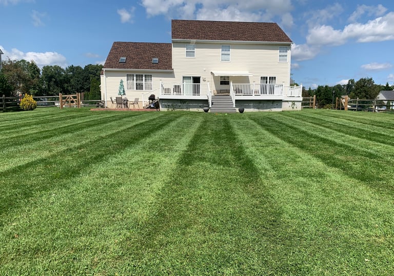 Professional lawn maintenance, including mowing, fertilization, and weed control for a lush yard.